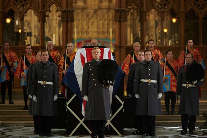 Pero la visita de la Reina poco antes de la muerte de Churchill y el beso en la frente, son detalles de la ficción para añadir dramatismo. Lo que sí fue real, fue la asistencia al funeral.