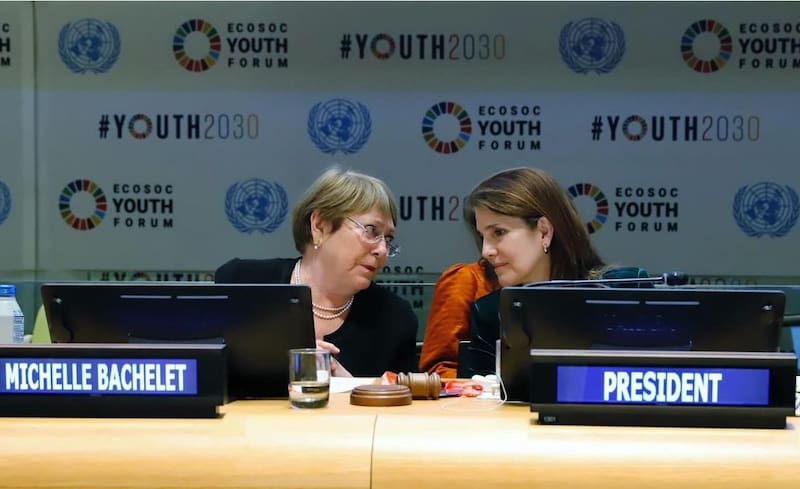 Algo de eso ya ocurrió a mediados de abril pasado, cuando Bachelet tuvo un fugaz regreso a la ONU. El 16 de ese mes, un salón plenario repleto de jóvenes aplaudió por largos minutos a la exmandataria chilena cuando tomó su lugar en el proscenio como una de las dos expositoras centrales del Foro de la Juventud, uno de los llamados “eventos paralelos” en la agenda de la ONU.